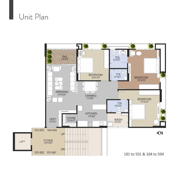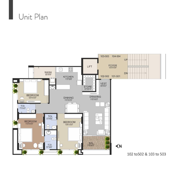 - 30000 sq. ft. common lush green area